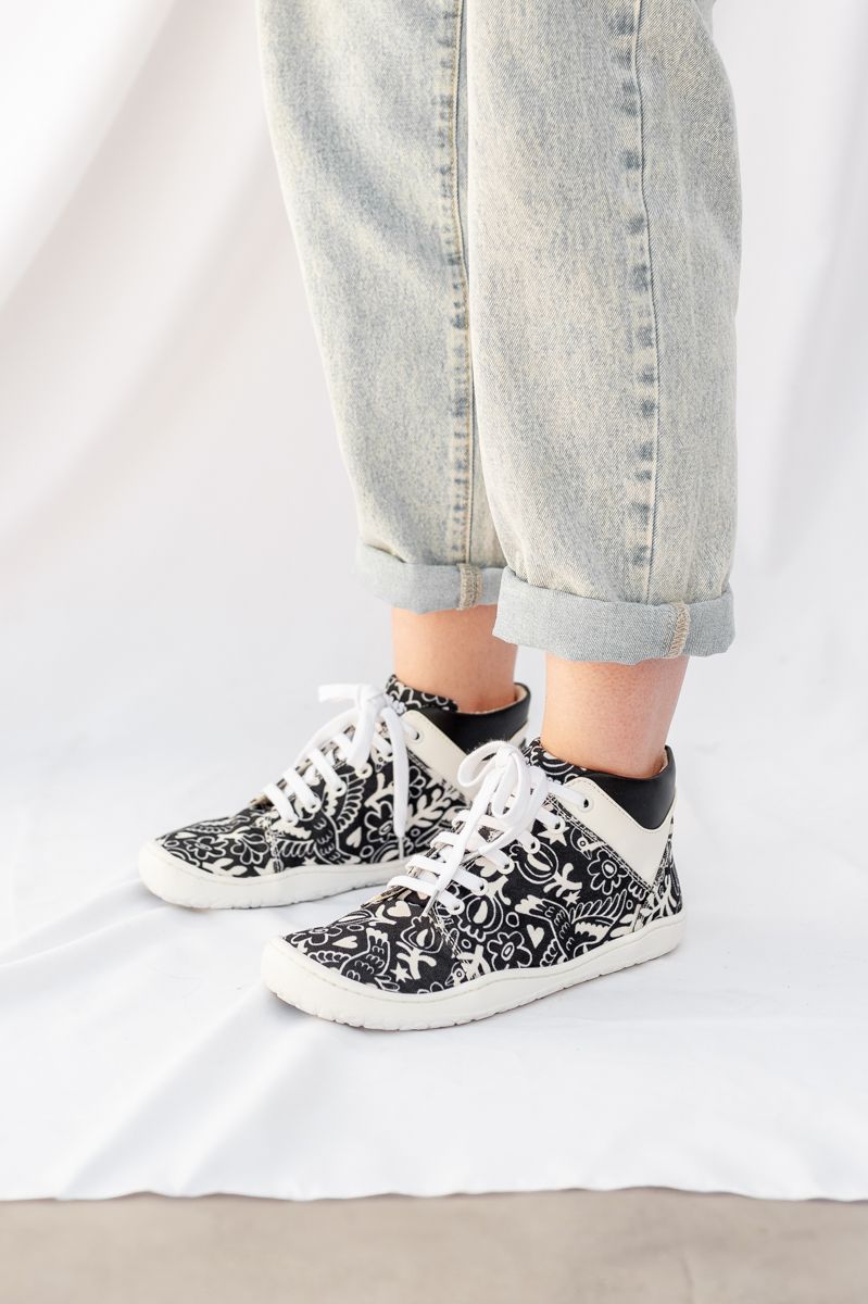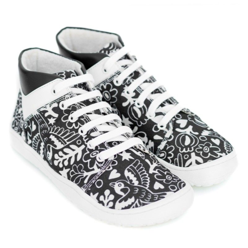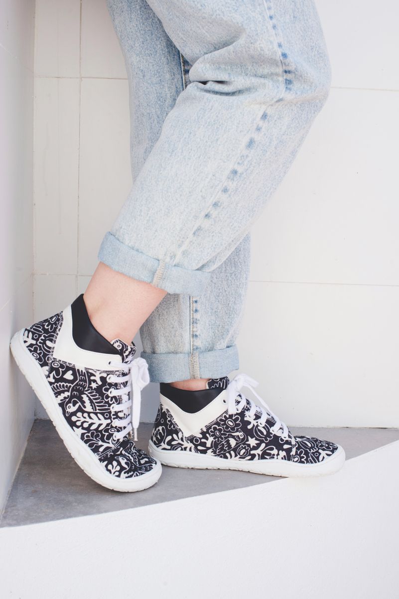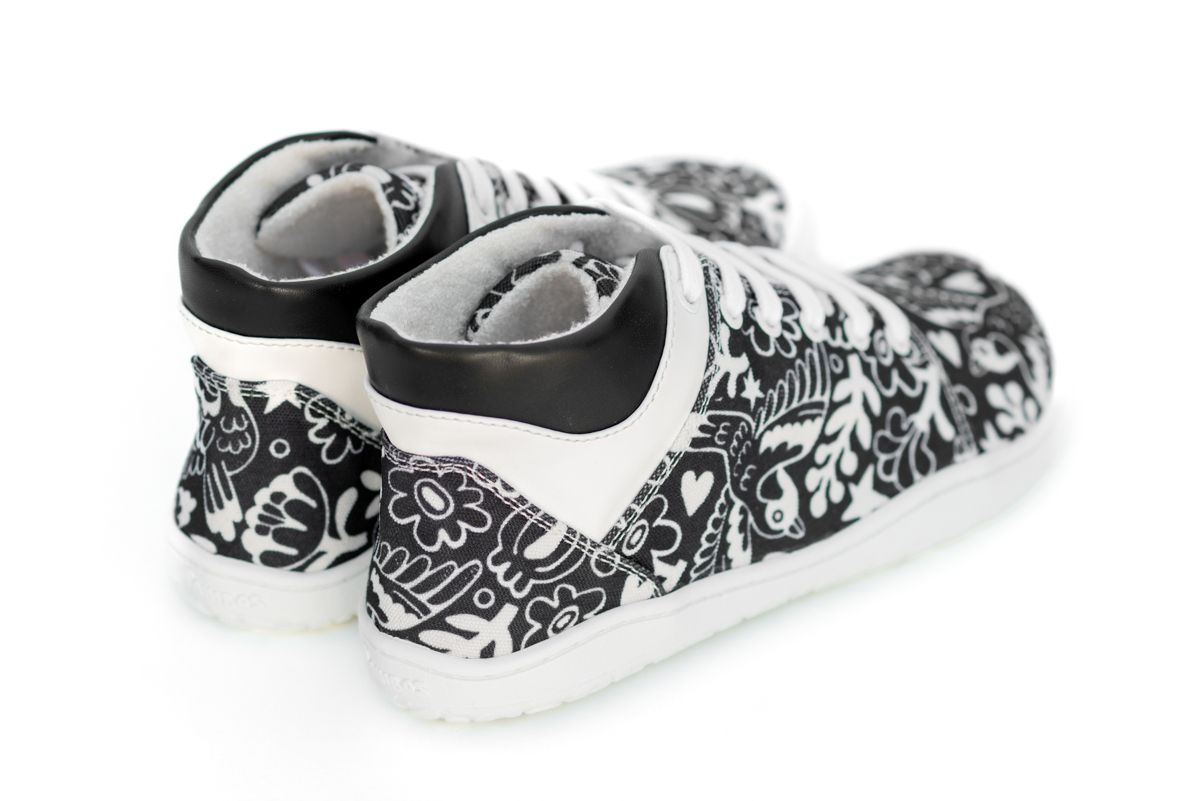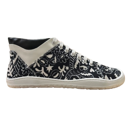 Descubre la fusión perfecta de estilo, comodidad y sostenibilidad con los botines Sambas the Bambas. Diseñados por el ilustrador Asis Percales, estos botines destacan por su dibujo único de pájaros y motivos florales, con una combinación de colores blanco y negro que aporta un toque elegante y moderno a tu calzado diario.