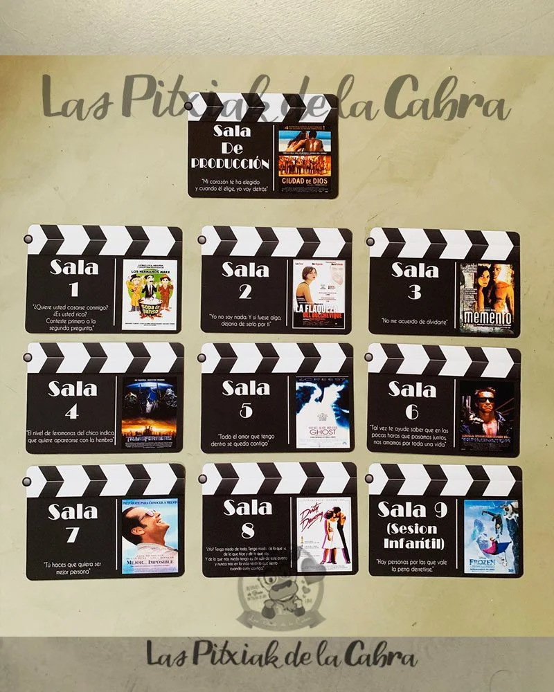 Por ejemplo, hemos hecho cientos de meseros claqueta de cine, son innumerables las películas que hemos plamado, pero hay unos novios Lucía y Víctor que llevaron esto un pasito más allá, hicieron una sesión de fotos imitando carteleras de cada película. Sus meseros claqueta de cine fueron personales al 1000×1000. ¡Nos encanta formar parte de vuestro gran día!