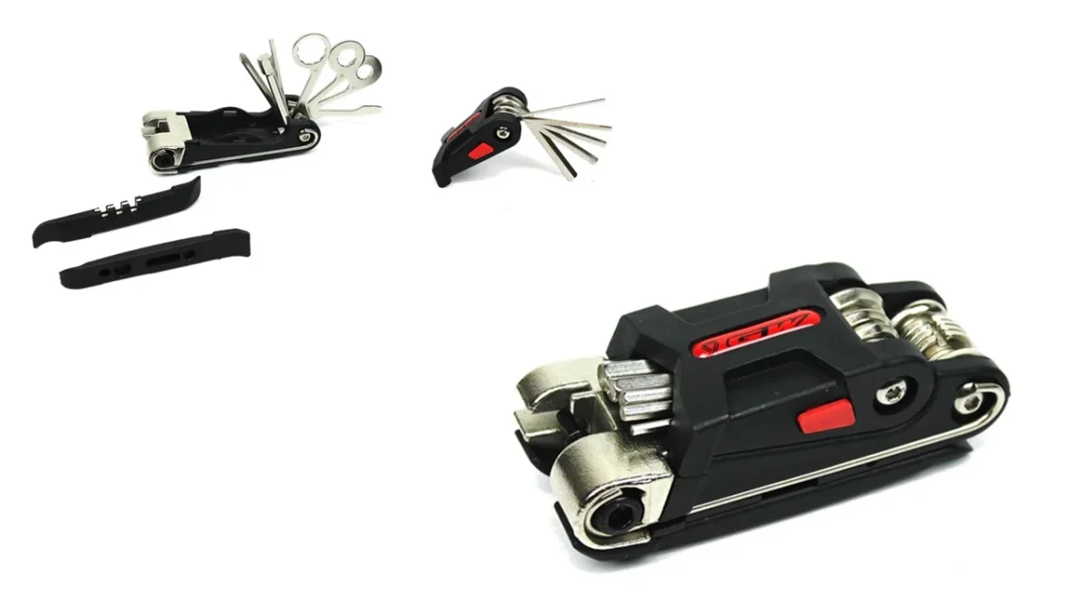 El multiherramientas de 19 funciones GW es un complemento ideal y fundamental para llevar contigo en tus rutas. Es un gran cómplice para tus largos recorridos ya que que posibilita incluso trabajos de reparación más delicados. Cargar una multiherramientas GW evitará que durante tu rodada sufras de alguna dificultad técnica.