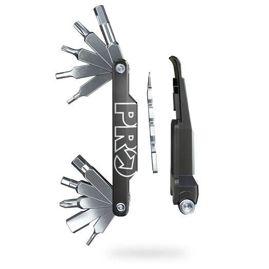 Diseñada para ofrecerte una mejor experiencia en tu bicicleta deportiva, la multiherramientas PRO incorpora 22 funciones en un cuerpo compacto de aluminio 6061. Incluye una herramienta de cadena, un soporte de cadena, desmontable, separador de pastillas de freno, diferentes llaves hexagonales, un destornillador PH2, dos llaves Torx, cuatro llaves para radios y llaves de apriete de 7, 8, 9 y 10 milímetros.