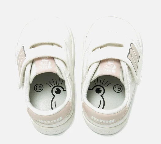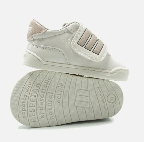 Zapatillas deportivas de color blanco para bebé de la marca Mustang, modelo Free Baby, con un diseño casual pensado para los primeros pasos y lavables. Su cierre de doble tira adherente facilita el calce y ajuste, mientras que la gran “m” lateral aporta un toque visual llamativo. El talón en contraste de color marino y la lengüeta con logotipo refuerzan su identidad de marca. Con certificado VEGANO sellado por INESCOP, el cual garantiza que la naturaleza química principal del material no se corresponde con fibras de origen animal. Diseñada y desarrollada especialmente en colaboración con el Dr. Juanjo López, traumatólogo deportivo e infantil, para respetar el desarrollo natural del pie de los niños. Gracias a su puntera ancha permite el libre movimiento de los dedos dentro del zapato. Su suela tiene 3 mm de grosor y con zero drop (totalmente plana) respeta el natural desarrollo del pie del pequeño y sus elementos flexibles y torsionables hace que el pie del niño no esté encorsetado por la estructura del zapato. Las plantillas extraíbles facilitan comprobar si la talla del calzado es la correcta para tu hijo. Además, su fácil apertura facilita que el niño pueda descalzarse y calzarse de forma autónoma. Acompaña los primeros pasos de tu bebé con Mustang.