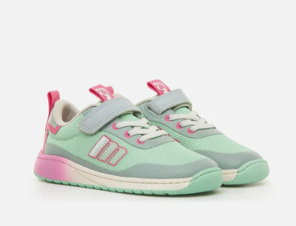Zapatilla Barefoot Mustang verde y rosa – Lavable (Ref. 49370)