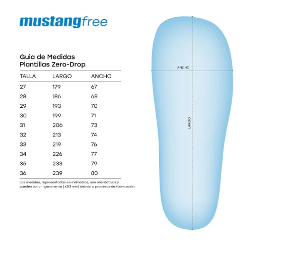 Horma (Klaso 110.2): Puntera anatómica extra ancha. Los dedos tienen total libertad para expandirse, evitando malformaciones y mejorando el equilibrio