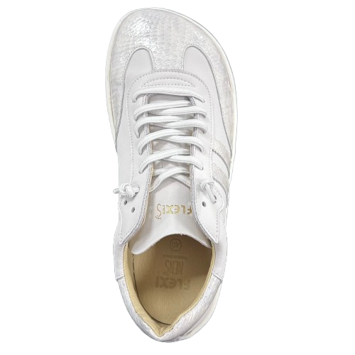 Fabricadas con upper de cuero natural y forro interior también de cuero, ofrecen una sensación suave, transpirable y de alta calidad desde el primer uso 🌿👣. Su color blanco con delicados detalles en plateado las convierte en un calzado muy fácil de combinar, perfecto tanto para looks casuales como más cuidados ✨