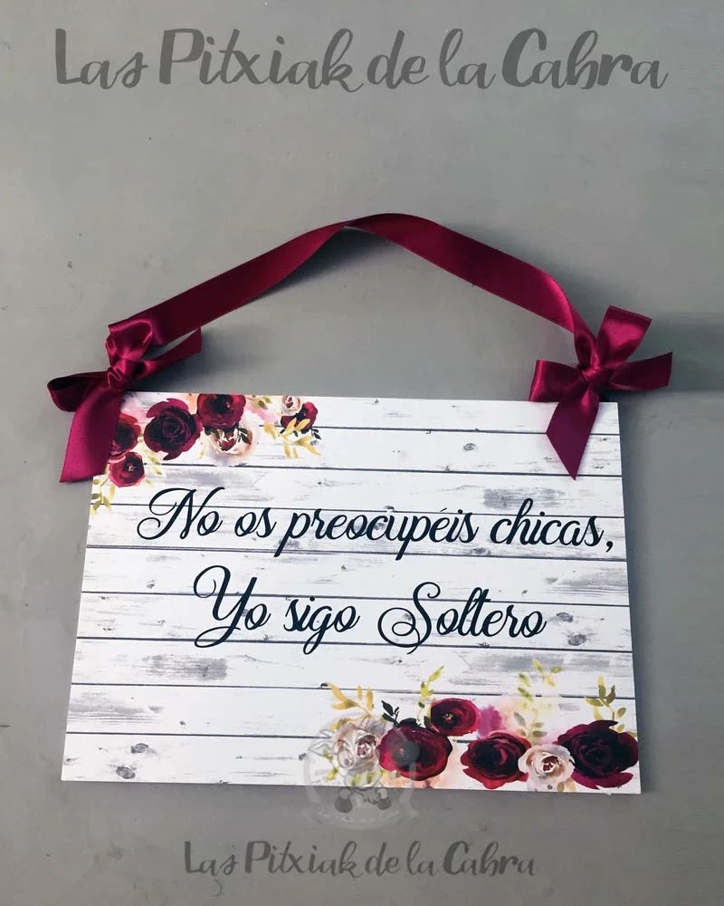 Este tipo de carteles llevan la impresión sobre papel, una base de panelado de madera y el lacito para colgar. Son carteles ligeros que no pesan pero también son resistentes, no se doblan, ni rompen fácilmente. El diseño se hace completamente personalizado, así como el lacito, también podemos ponerlo del color que queráis. Su medida es de 297×210 mm el modelo rectangular y de 285x235mm el modelo con forma de corazón.