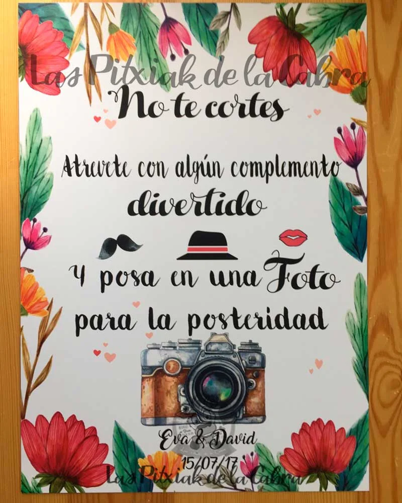Como todos nuestros artículos, hacemos el diseño totalmente personalizado para los carteles. Todos nuestros artículos llevan un apartado de personalización en el que podéis escribir cualquier cosa que queráis modificar. Si os gusta este cartel pero queréis cambiarle el texto, añadir una foto vuestra, vuestro logo, o lo que se os ocurra, escribidlo en el apartado de personalización. Cualquier cosa que queráis que incluyamos, enviadla al mail del pedido.