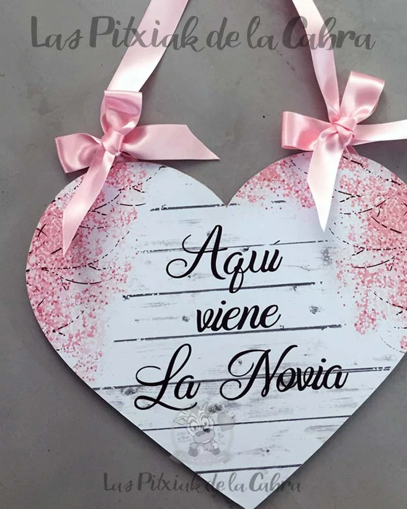 Los carteles de aquí viene la novia, se utilizan en la ceremonia para que los pajes o damitas anuncien la llegada de la novia, del novio o lleven alguna frase graciosa.
