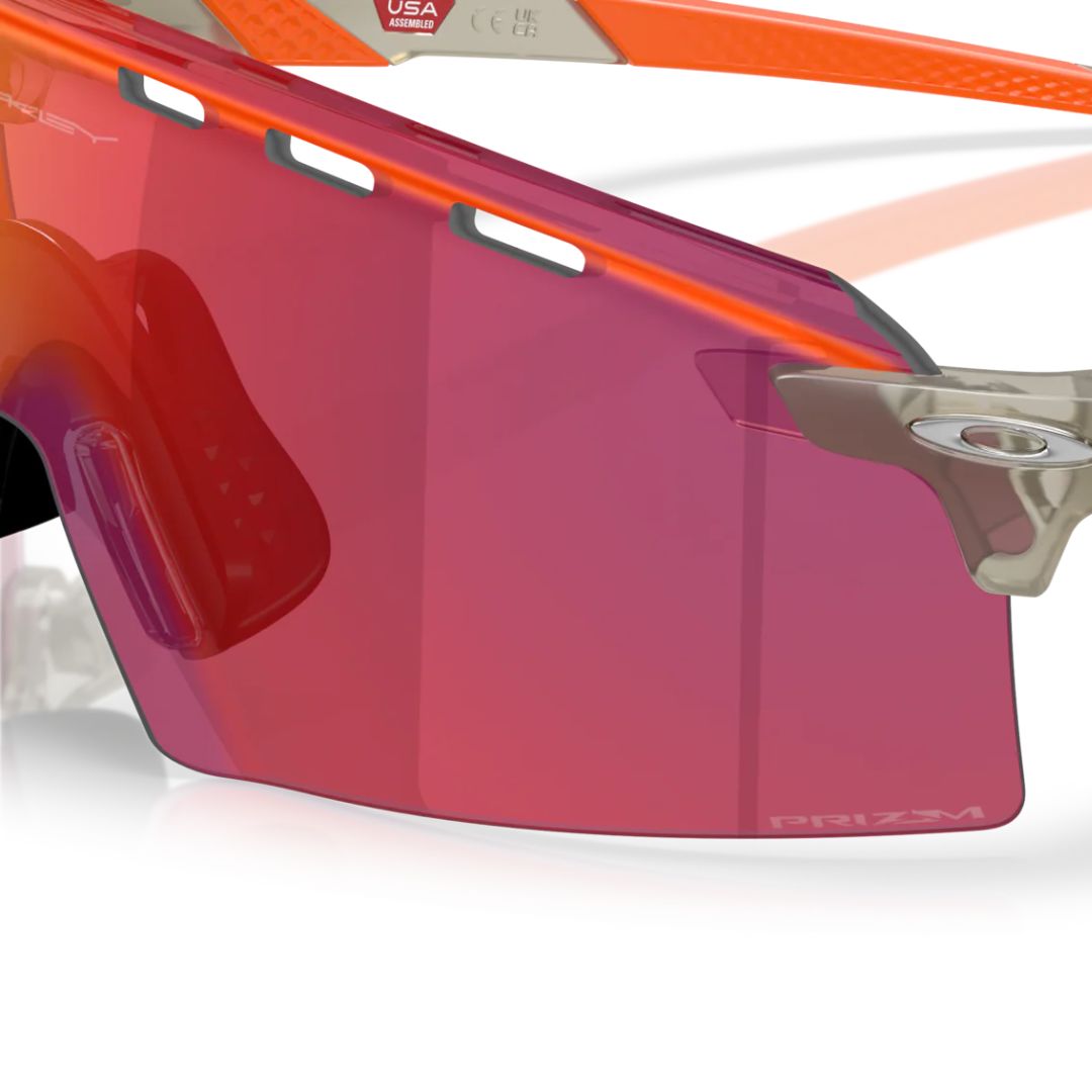 Usando como base lo aprendido de los deportistas del equipo de Oakley, los diseñadores han combinado las necesidades funcionales con algunos elementos del legado para crear una montura que ofrece una solución exclusiva a los deportistas que buscan el máximo rendimiento. La combinación de la forma de lente, hecha posible por PhysioMorphic Geometry™, con un corte inspirado en uno de los modelos del legado, Razor Blades, ofrece cobertura y estilo. A la vez, el diseño de ventilación de las gafas de sol permite que fluya el aire de manera óptima. La montura está fabricada de O Matter™ para ofrecer fuerza, comodidad y durabilidad.