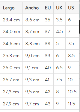 Nota sobre la talla: este modelo se ajusta a una talla estándar