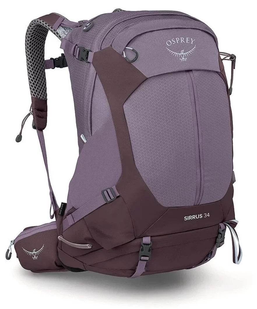 Osprey Sirrus 34 es una mochila de senderismo para mujer diseñada para quienes quieren más capacidad, organización y ventilación en rutas largas de montaña o travesías de varios días.
