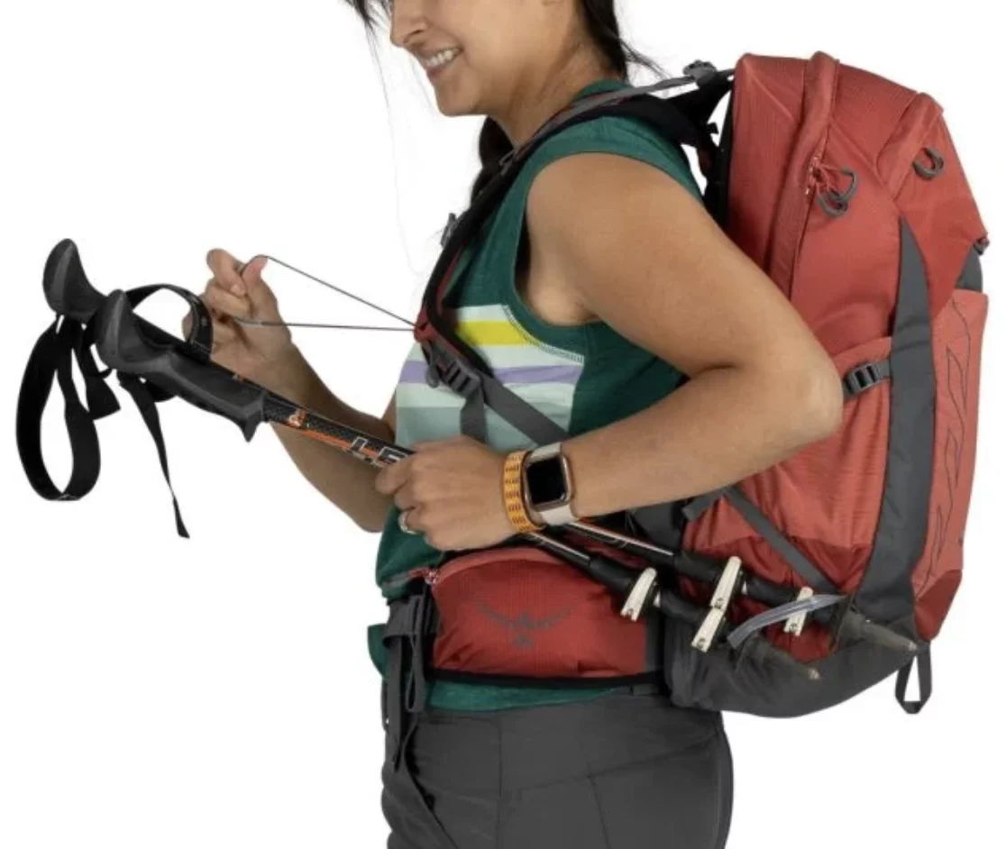 Disfruta de bolsillos versátiles en el arnés, el cinturón de cadera y el panel frontal, además de los accesorios para bastones de trekking, piolets y cascos de bicicleta que hacen de esta una mochila verdaderamente multideportiva.