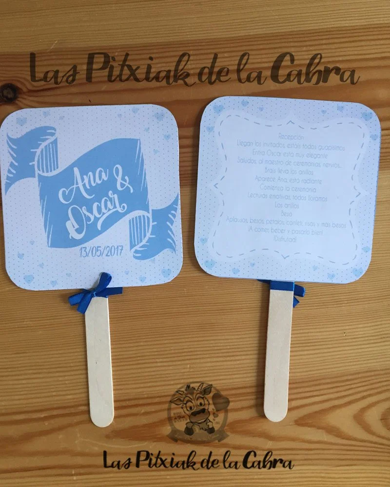No paséis calor… ¡Abanicaros! Hacemos pai pai para bodas, su fabricación es completamente artesanal, en papel de 300 gramos a doble cara y van rematados con un lacito. Su medida es de unos 23 cm x 14,5 cm el diámetro de la parte superior. Los Pai Pai para bodas se envían completamente montados y listos para colocar donde sea.
