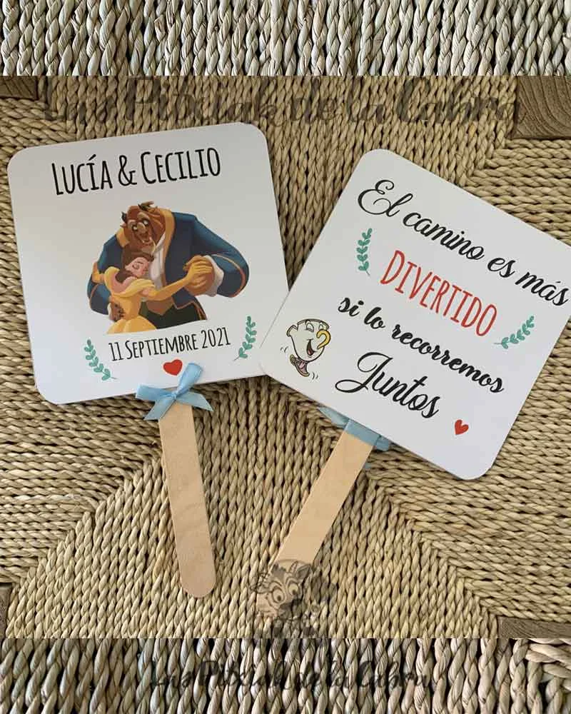 No paséis calor… ¡Abanicaros! Hacemos pai pai para bodas, su fabricación es completamente artesanal, en papel de 300 gramos a doble cara y van rematados con un lacito. Su medida es de unos 23 cm x 14,5 cm el diámetro de la parte superior. Los Pai Pai para bodas se envían completamente montados y listos para colocar donde sea.