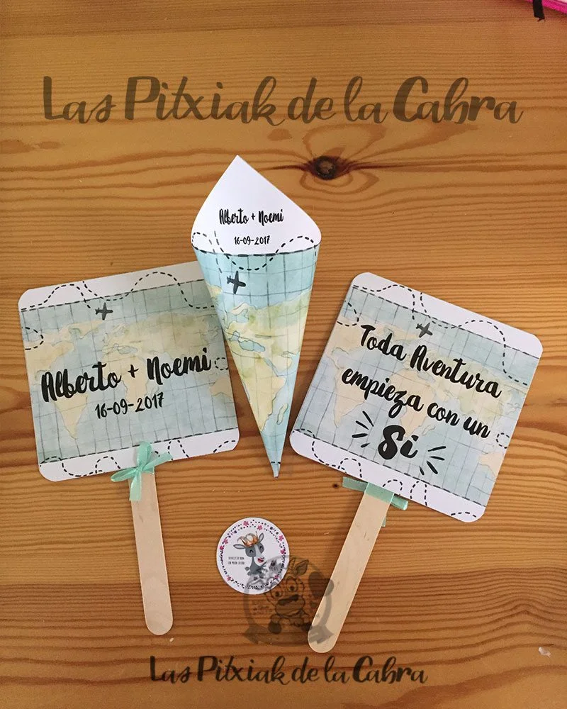 No paséis calor… ¡Abanicaros! Hacemos pai pai para bodas, su fabricación es completamente artesanal, en papel de 300 gramos a doble cara y van rematados con un lacito. Su medida es de unos 23 cm x 14,5 cm el diámetro de la parte superior. Los Pai Pai para bodas se envían completamente montados y listos para colocar donde sea.