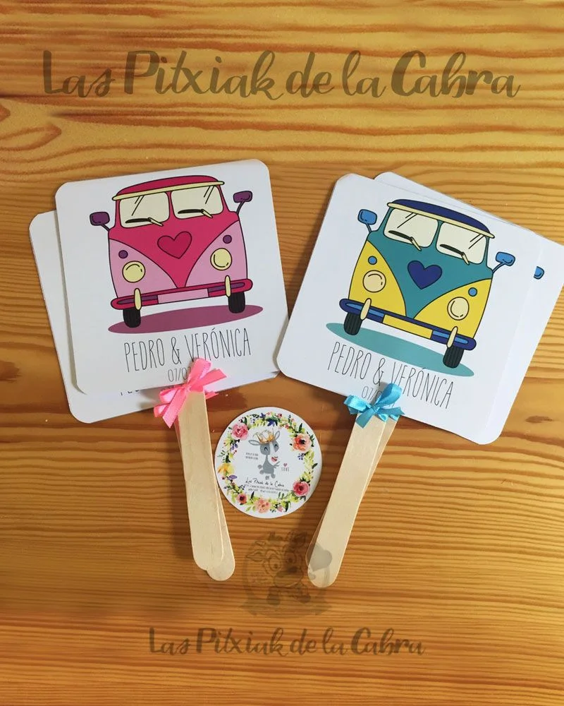 No paséis calor… ¡Abanicaros! Hacemos pai pai para bodas, su fabricación es completamente artesanal, en papel de 300 gramos a doble cara y van rematados con un lacito. Su medida es de unos 23 cm x 14,5 cm el diámetro de la parte superior. Los Pai Pai para bodas se envían completamente montados y listos para colocar donde sea.