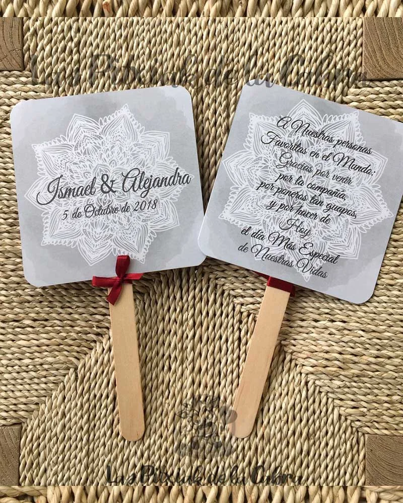 No paséis calor… ¡Abanicaros! Hacemos pai pai para bodas, su fabricación es completamente artesanal, en papel de 300 gramos a doble cara y van rematados con un lacito. Su medida es de unos 23 cm x 14,5 cm el diámetro de la parte superior. Los Pai Pai para bodas se envían completamente montados y listos para colocar donde sea.