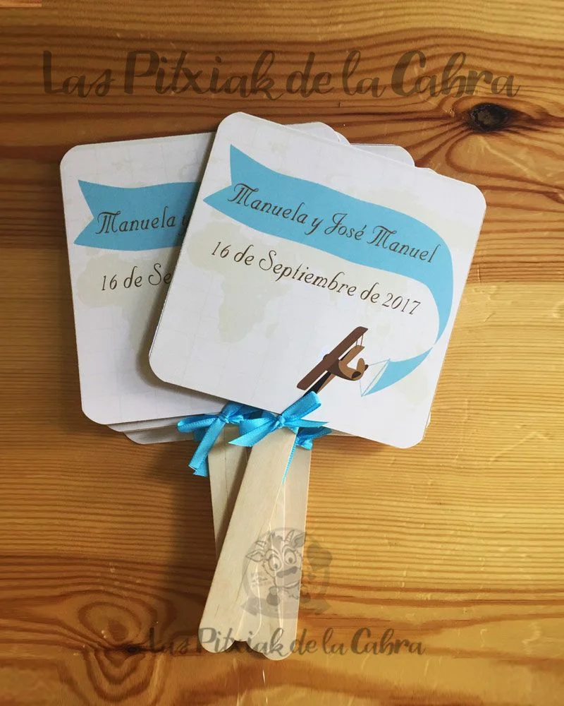 No paséis calor… ¡Abanicaros! Hacemos pai pai para bodas, su fabricación es completamente artesanal, en papel de 300 gramos a doble cara y van rematados con un lacito. Su medida es de unos 23 cm x 14,5 cm el diámetro de la parte superior. Los Pai Pai para bodas se envían completamente montados y listos para colocar donde sea.