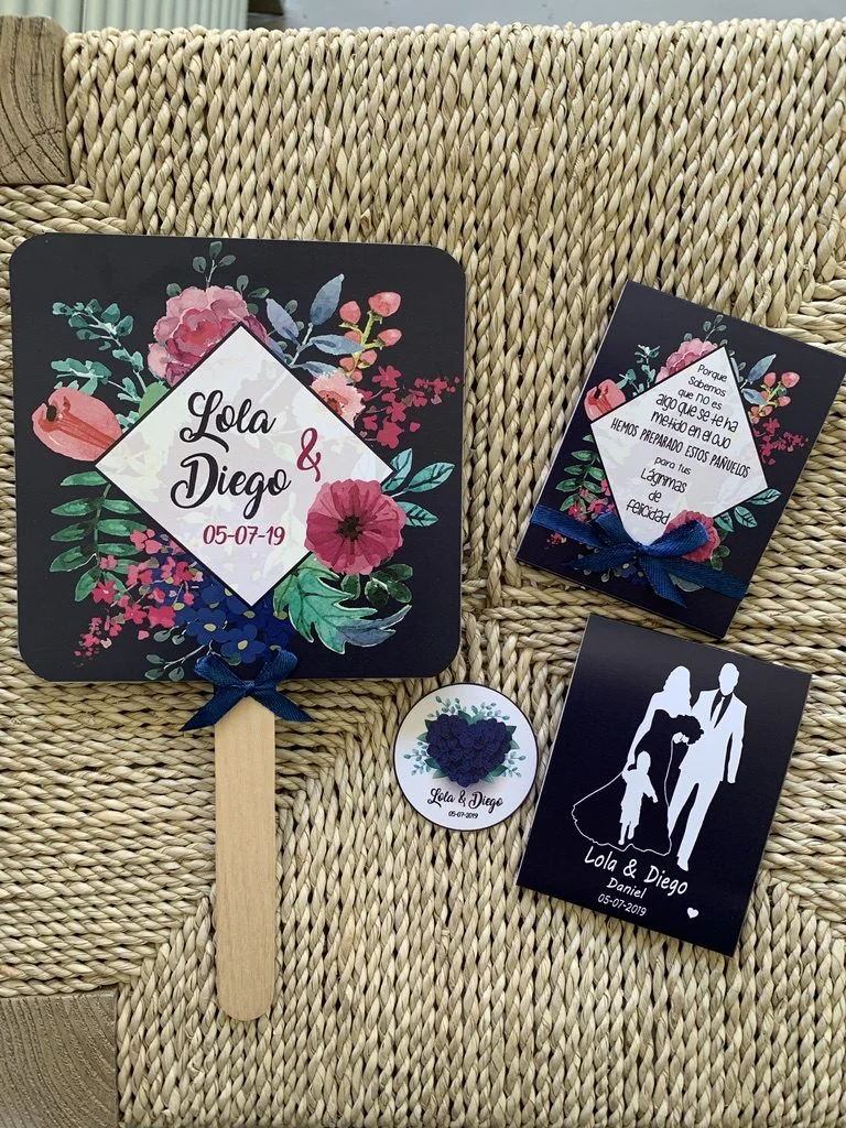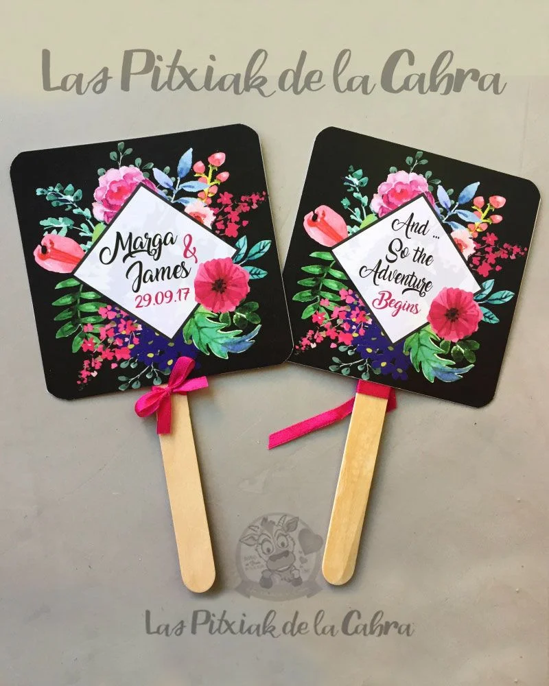 No paséis calor… ¡Abanicaros! Hacemos pai pai para bodas, su fabricación es completamente artesanal, en papel de 300 gramos a doble cara y van rematados con un lacito. Su medida es de unos 23 cm x 14,5 cm el diámetro de la parte superior. Los Pai Pai para bodas se envían completamente montados y listos para colocar donde sea.