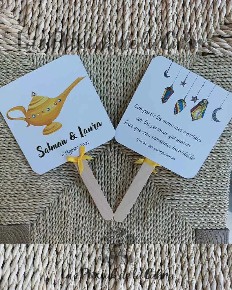 No paséis calor… ¡Abanicaros! Hacemos pai pai para bodas, su fabricación es completamente artesanal, en papel de 300 gramos a doble cara y van rematados con un lacito. Su medida es de unos 23 cm x 14,5 cm el diámetro de la parte superior. Los Pai Pai para bodas se envían completamente montados y listos para colocar donde sea.