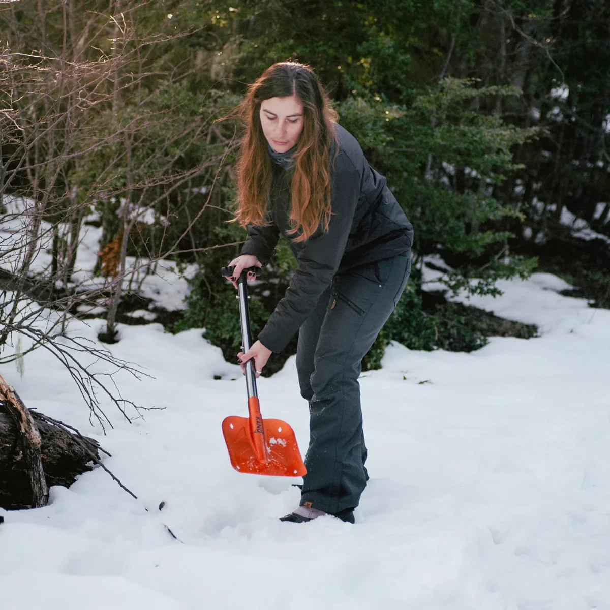 Rescate en avalanchas: En caso de quedar atrapado en una avalancha, una pala de nieve portátil te permite cavar para liberarte o ayudar a liberar a otras personas atrapadas.