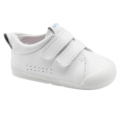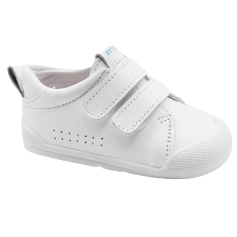 Con un diseño clásico y elegante en piel blanca de alta calidad, esta zapatilla es ideal tanto para el uso escolar como para cualquier aventura diaria de los peques.
