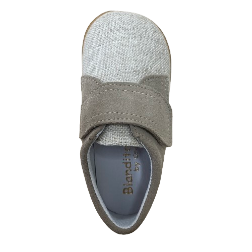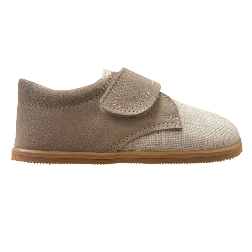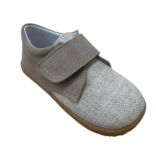 Fabricado en una elegante combinación de lino y serraje, ofrece un tacto suave y una excelente transpirabilidad, ayudando a mantener el pie fresco y cómodo. Su velcro ancho y resistente facilita el calce y proporciona una sujeción firme en el empeine, favoreciendo la estabilidad necesaria durante los primeros pasos.
