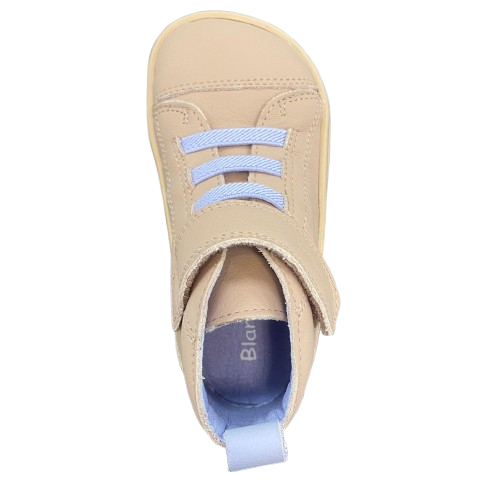 Su cierre de velcro regulable permite un calce sencillo y rápido, mientras que las gomas elásticas ofrecen mayor sujeción y comodidad durante el movimiento. La suela flexible de goma, con el logo Blanditos grabado, favorece una pisada natural y cómoda, adaptándose a las necesidades de los pies en crecimiento.