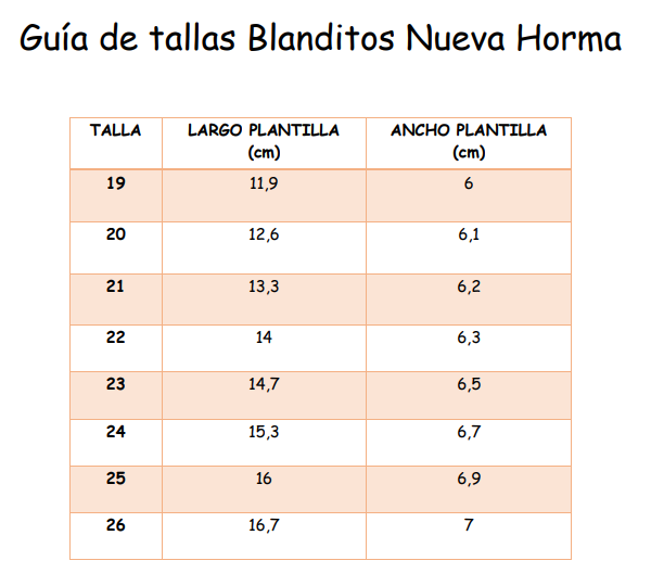 *Para tallas de la 27 a la 35, consultar modelo Tokio.