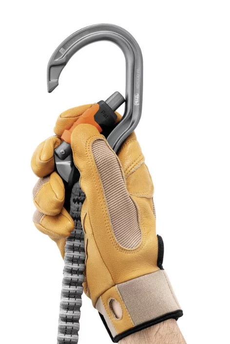 – Mosquetón de gran abertura para mosquetonear/desmosquetonear con facilidad los cables.