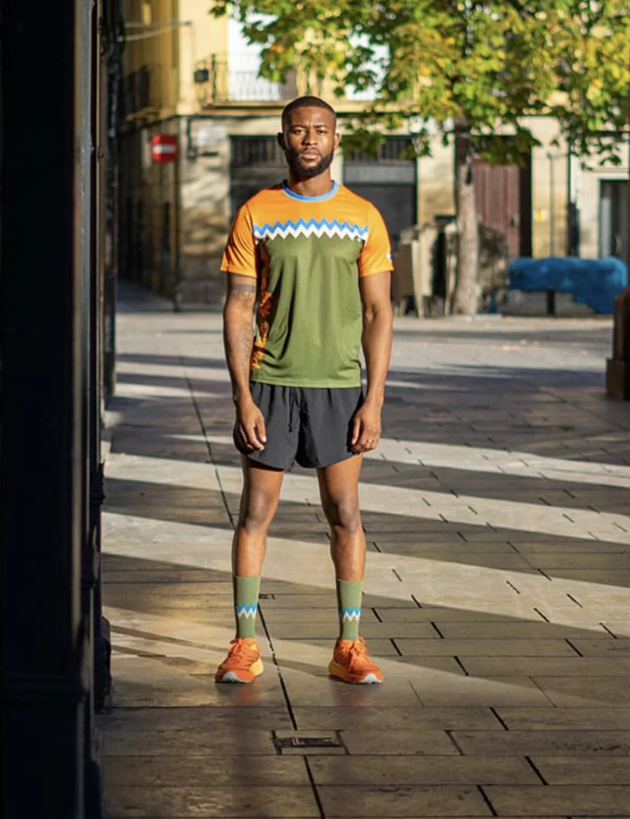 Pack de camiseta técnica + calcetines para running, ligero, transpirable y producido localmente. Regalo perfecto para corredores.
