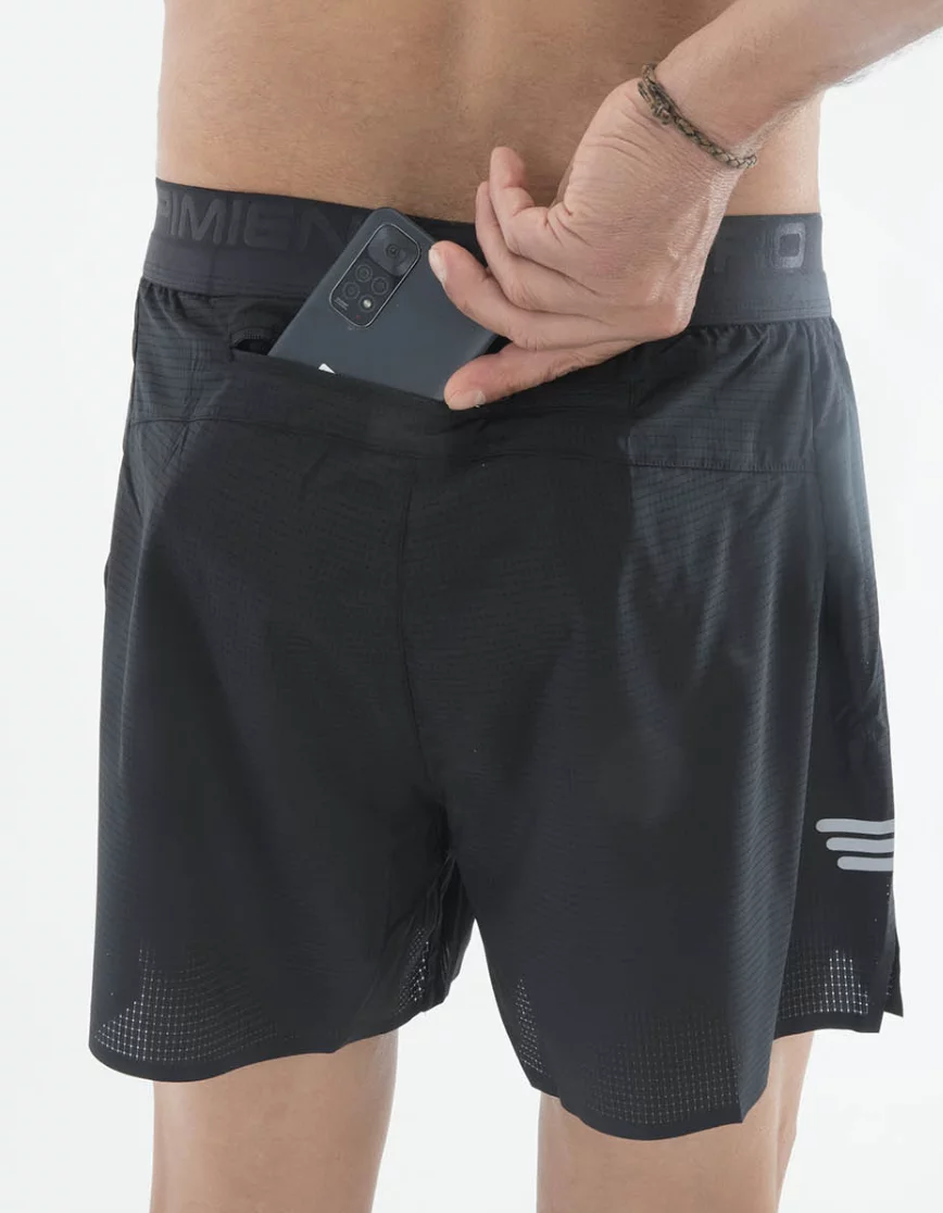 Pantalones cortos técnicos ultraligeros y transpirables, con braga interior, bolsillo trasero y corte sin costuras. Ideal para entrenamientos intensos.