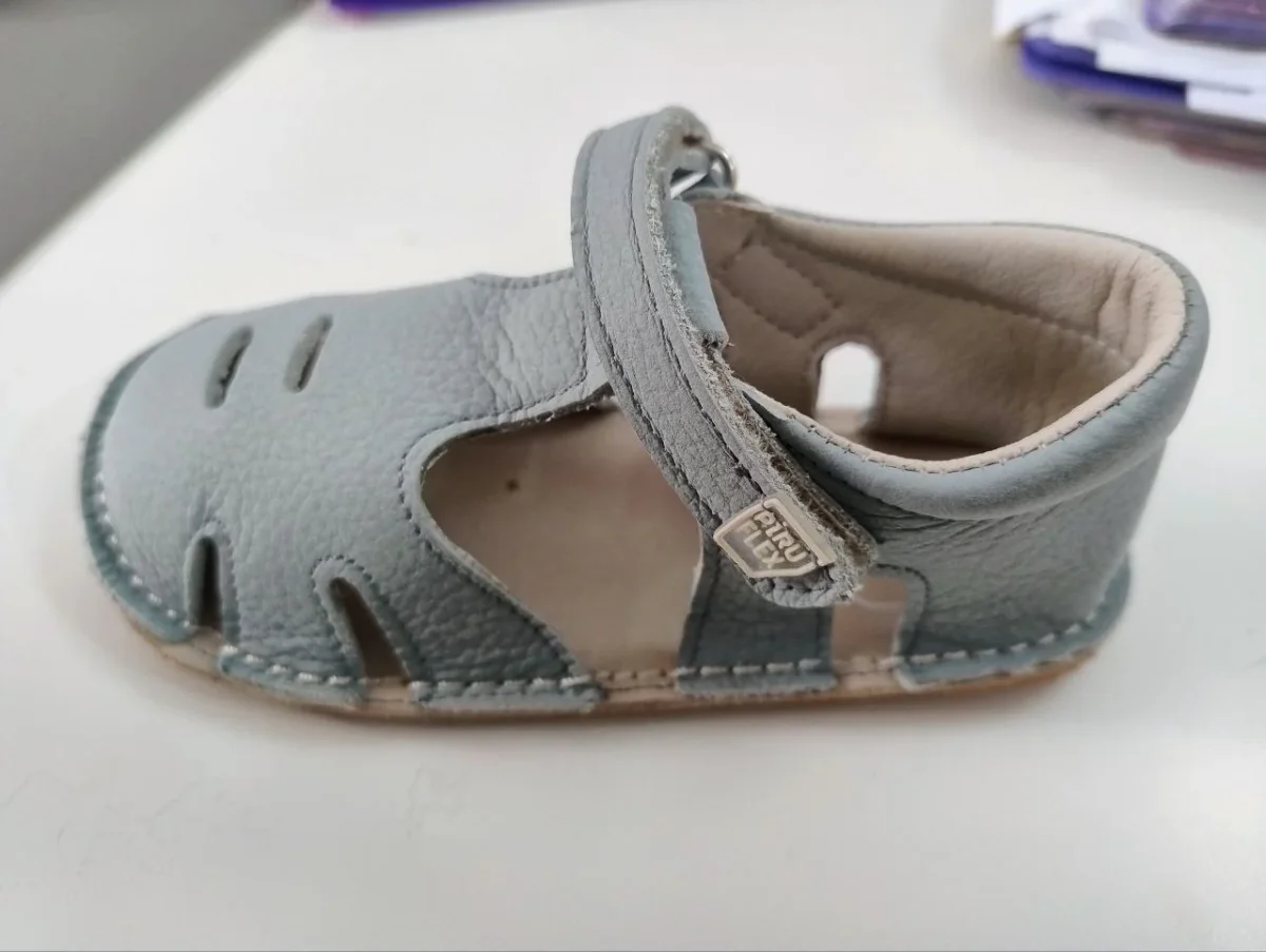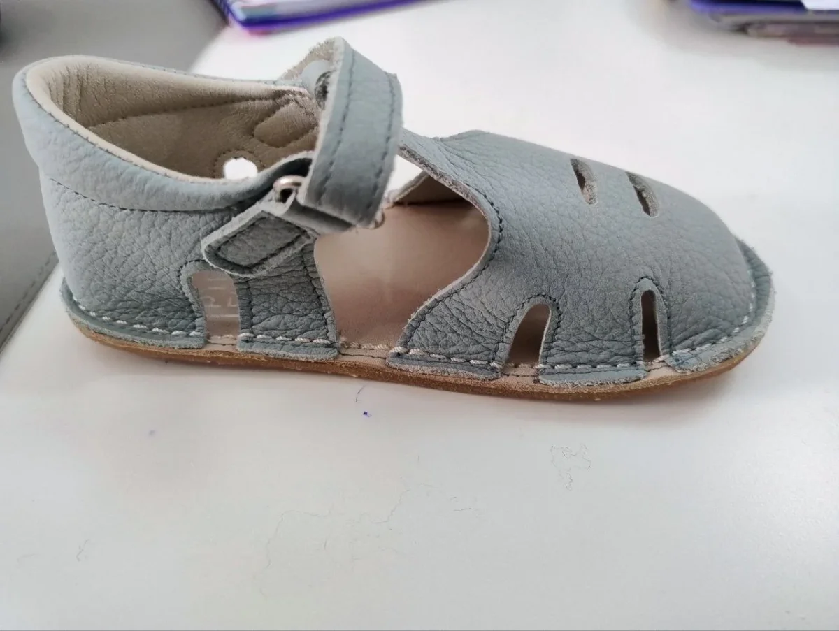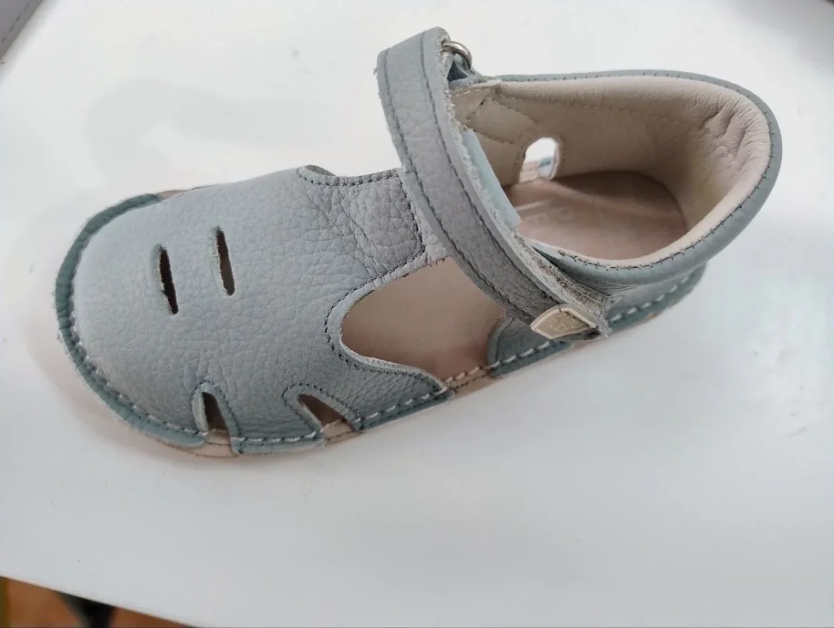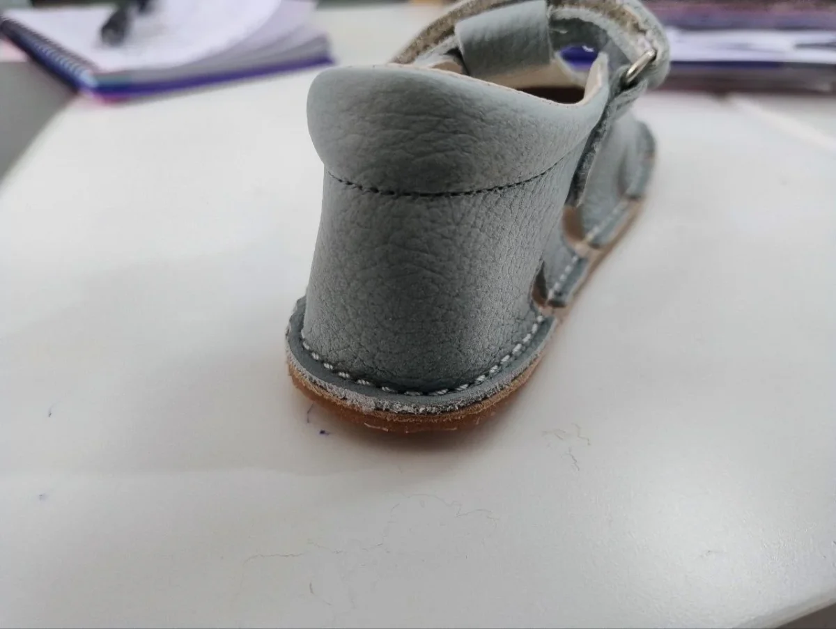 La suela es plana (drop 0), muy blanda y flexible, sin contrafuerte, y diseñada con una horma de ancho especial que permite libertad para los dedos. cierre de velcro que facilita el ajuste y calce.
