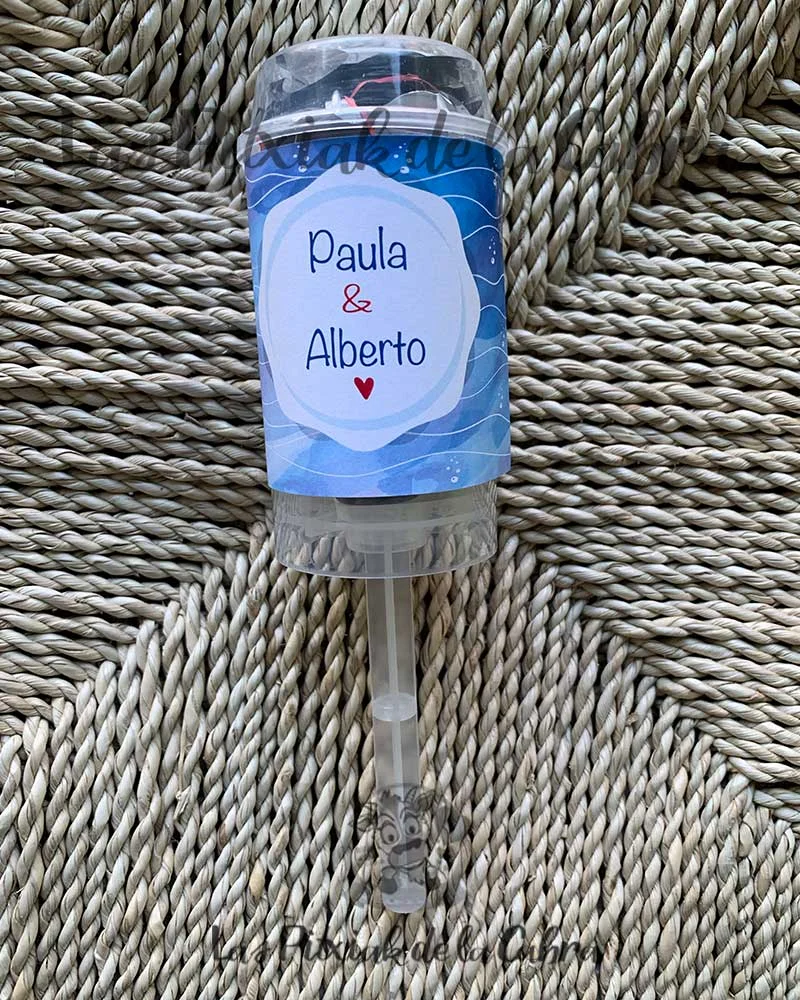 Push pop de confeti. Mide 48 x 180 mm en total. El diseño se puede hacer totalmente personalizado. Podemos hacerlo a juego con cualquier cosa de las que tenemos en la tienda online. Solo tienes que comentarlo en el apartado reservado de personalización.