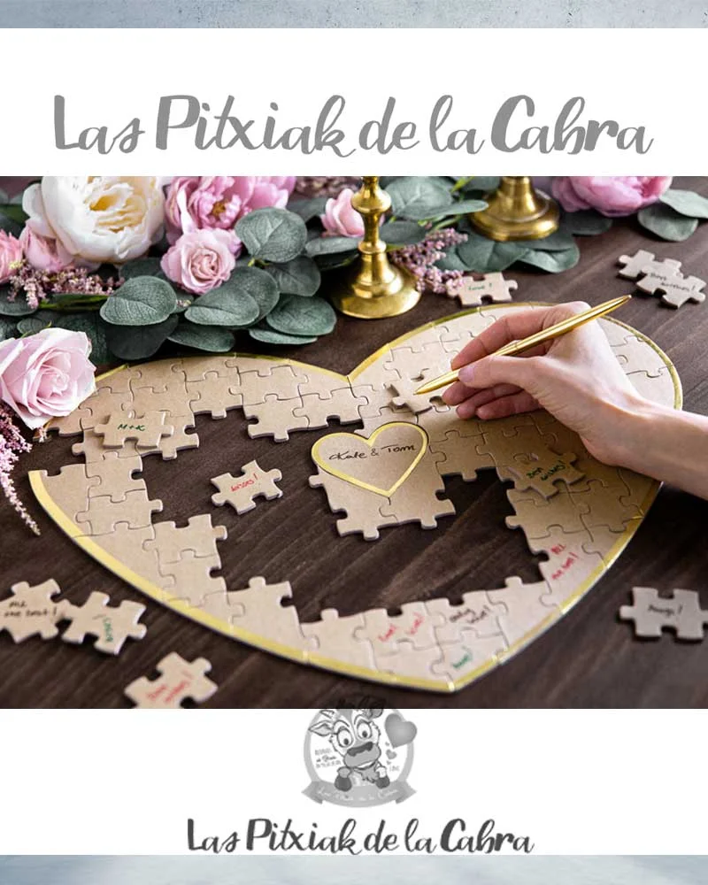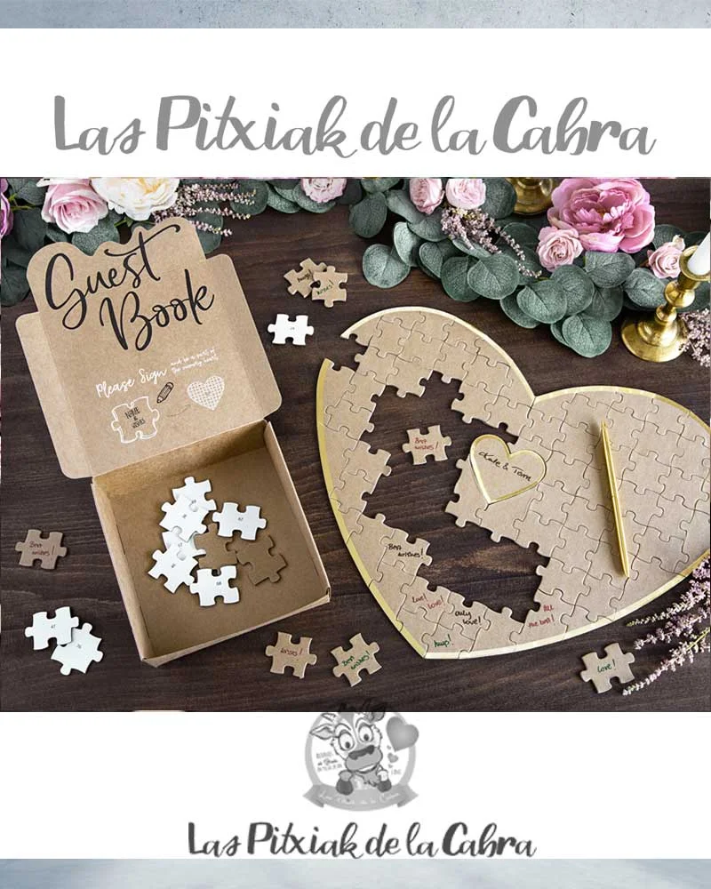 Este Puzzle corazón para firmas Kraft es ideal para sorprender a tus invitados.