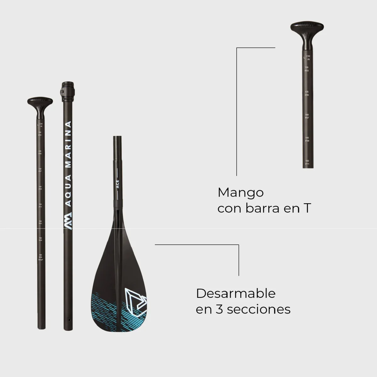 - Mango: Mango de barra en T estándar.