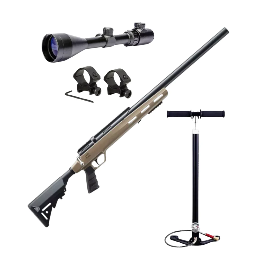 Con diseño táctico y culata sintética. El cañón pasa por dentro del depósito.