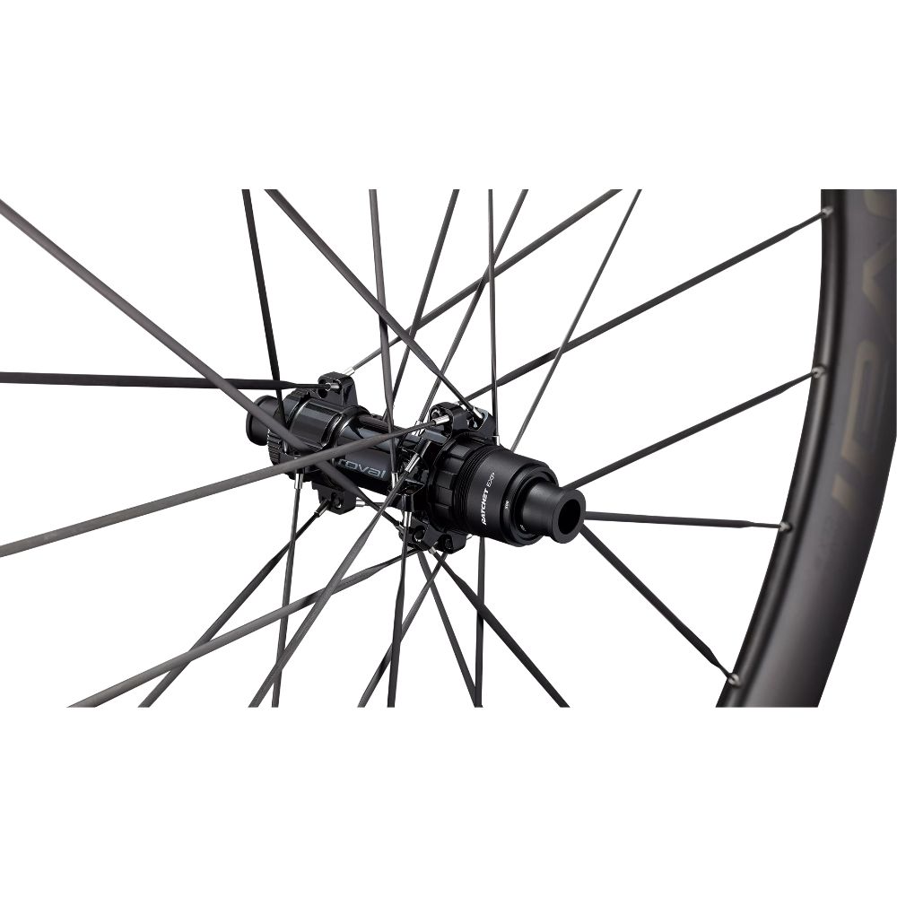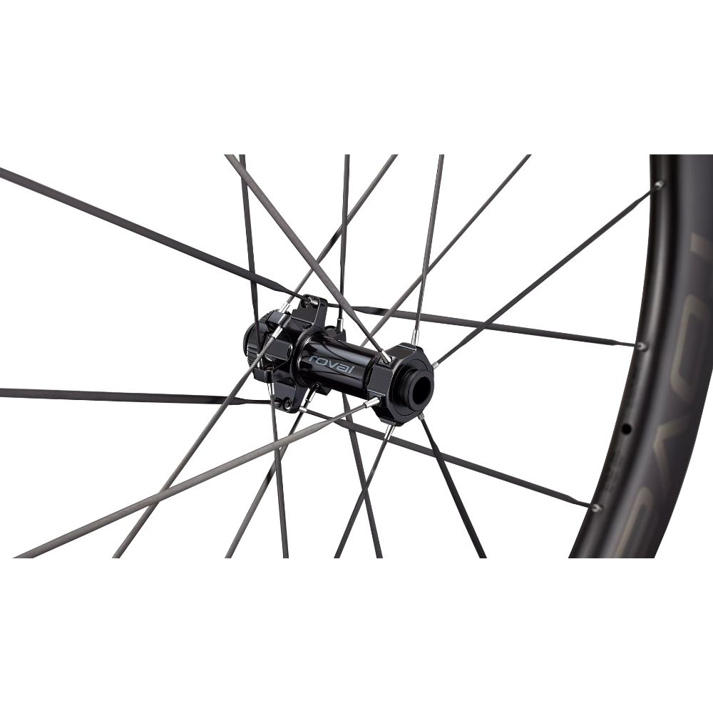 Radios traseros: Roval by Arris, radios aero de material compuesto con extremos de titanio, tipo T-headCantidad: 24 (DS: 277 mm, NDS: 273 mm)