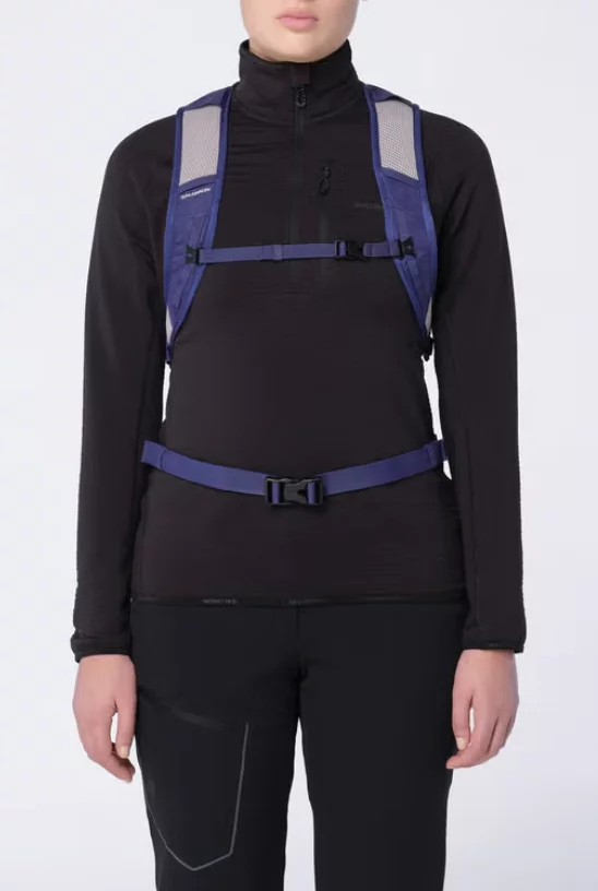 Salomon ha actualizado el arnés y el panel trasero para maximizar la comodidad y la transpirabilidad, además de añadir más volumen y líneas de diseño más dinámicas.