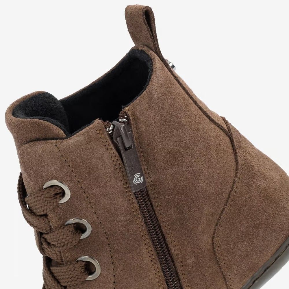 El Groundies Salzburg es un botín con cordones que combina un diseño decidido con la libertad del calzado barefoot. Sus cordones anchos y grandes ojales aportan personalidad, mientras que el ante suave ofrece un acabado aterciopelado y elegante.