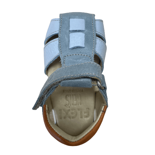 Esta bonita sandalia de Flexi Nens, combina en piel dos tipos de azul y un detalle en marrón en la zona del talón para darle un divertido aire vaquero a nuestros pequeños. Con cierre de velcro para una mayor comodidad, no te lo pienses más y lánzate a por estas veraniegas sandalias vaqueras.
