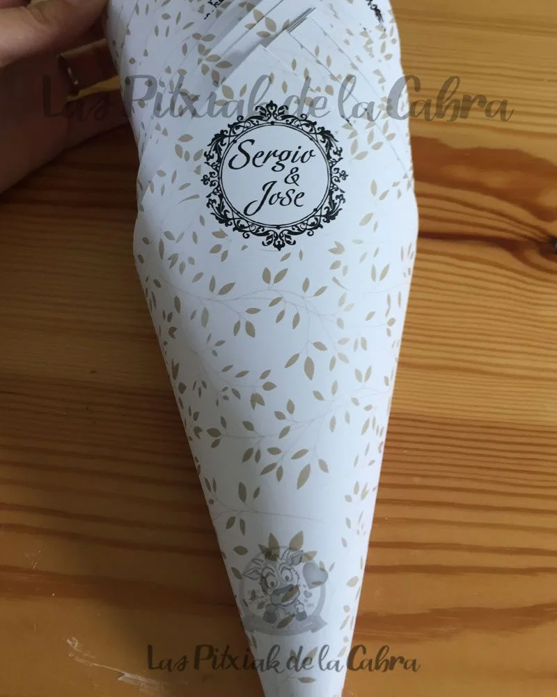 El diseño es totalmente personalizado si quieres un diseño desde cero entra aquí https://laspitxiakdelacabra.com/producto/conos-para-petalos-articulo-0/ y contadnos ahí vuestras ideas.