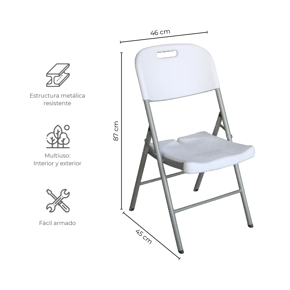 Son fáciles de transportar y guardar, ideales para camping y eventos al aire libre ya que resisten a la intemperie.