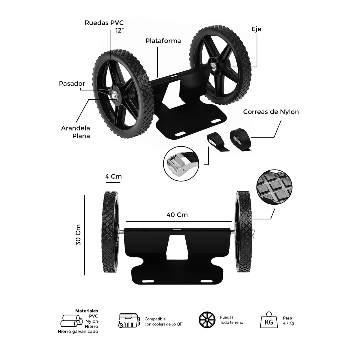 Transporta tu cooler sin complicaciones con el Set de Ruedas para Coolers de 65QT by Kano. Este kit hace todo el trabajo pesado y te permite trasladar tu cooler sin esfuerzo en la playa, camping, parques, viajes de pesca y prácticamente en donde quieras. Solo tienes que ajustarlo a tu cooler y salir!