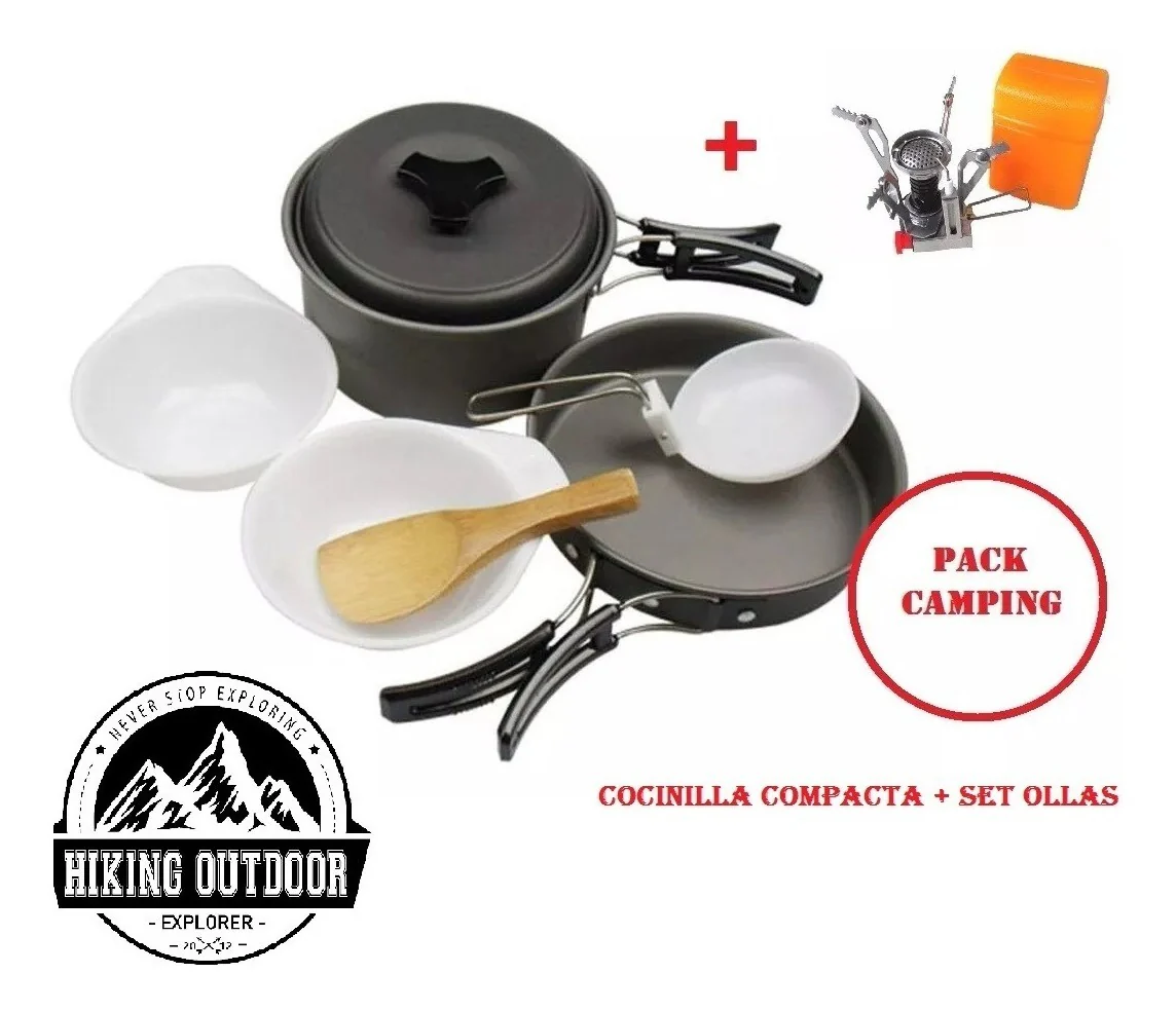Set Ollas Camping + Cocinilla Plegable con chispero