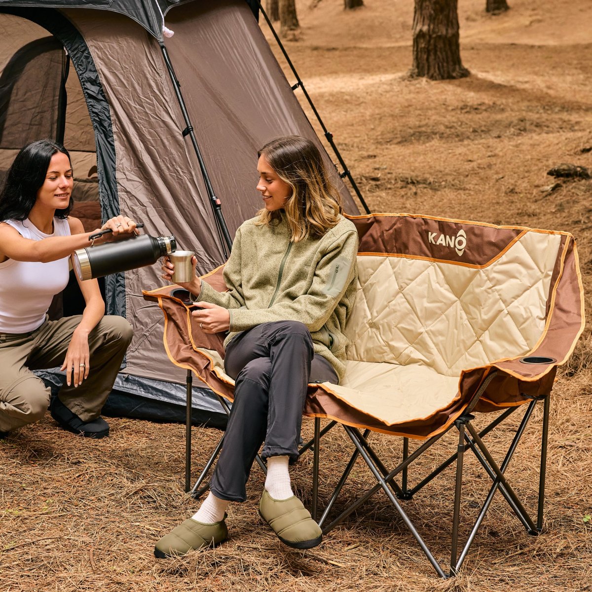 La Silla Plegable Doble para Camping y Playa Colico by Kano es perfecta para disfrutar al aire libre en compañía. Con capacidad para dos personas, este sofá es ideal para tus experiencias al aire libre. Su diseño plegable y la bolsa de transporte facilitan llevarla a la playa, montaña, camping, parque o incluso utilizarla en el jardín de tu casa. La estructura de acero al carbono proporciona una gran estabilidad y resistencia. Además, cuenta con dos portavasos para tener tus bebidas siempre a mano. ¡Comparte tus aventuras con Kano!