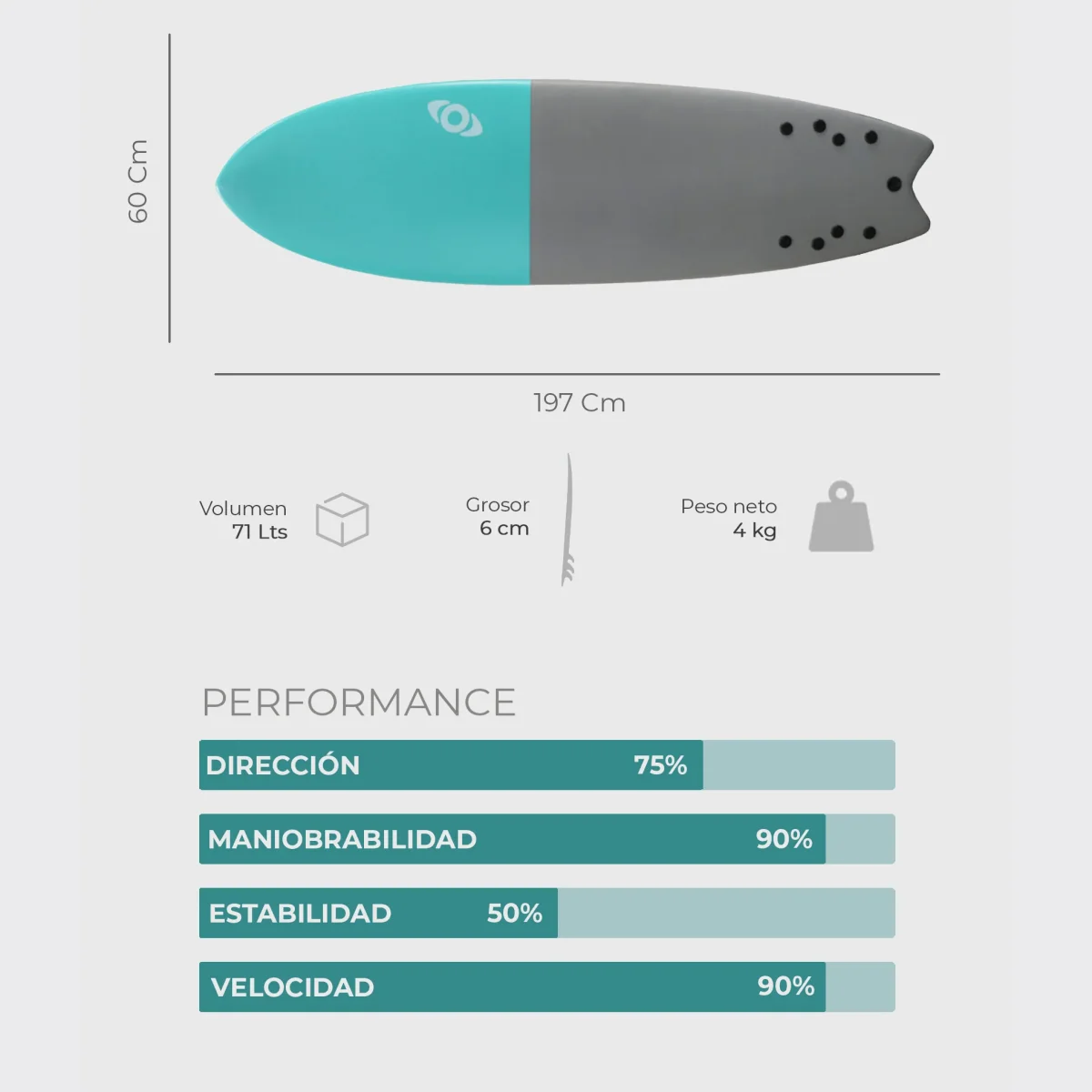 - Grosor: 6 cm.