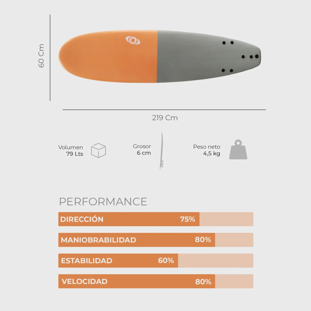El Softboard de 7 Pies By Kano diseñado para personas que se están iniciando en el deporte o que buscan hacerlo de manera más tranquila. Es una tabla muy dócil que te entrega facilidades a la hora de surfear dada su gran estabilidad.