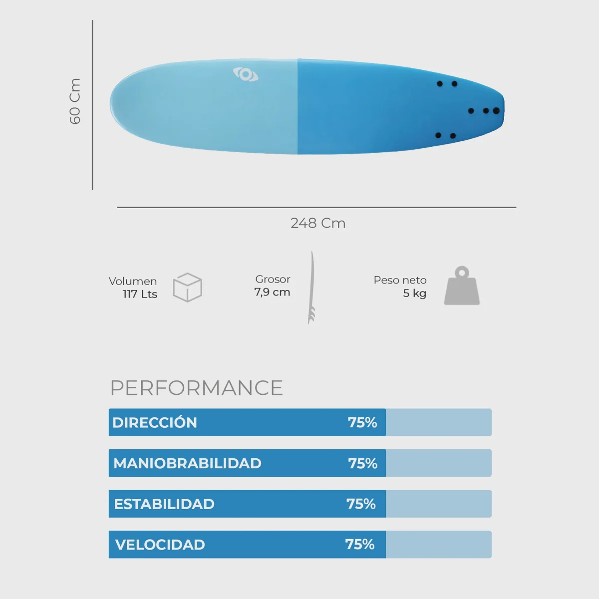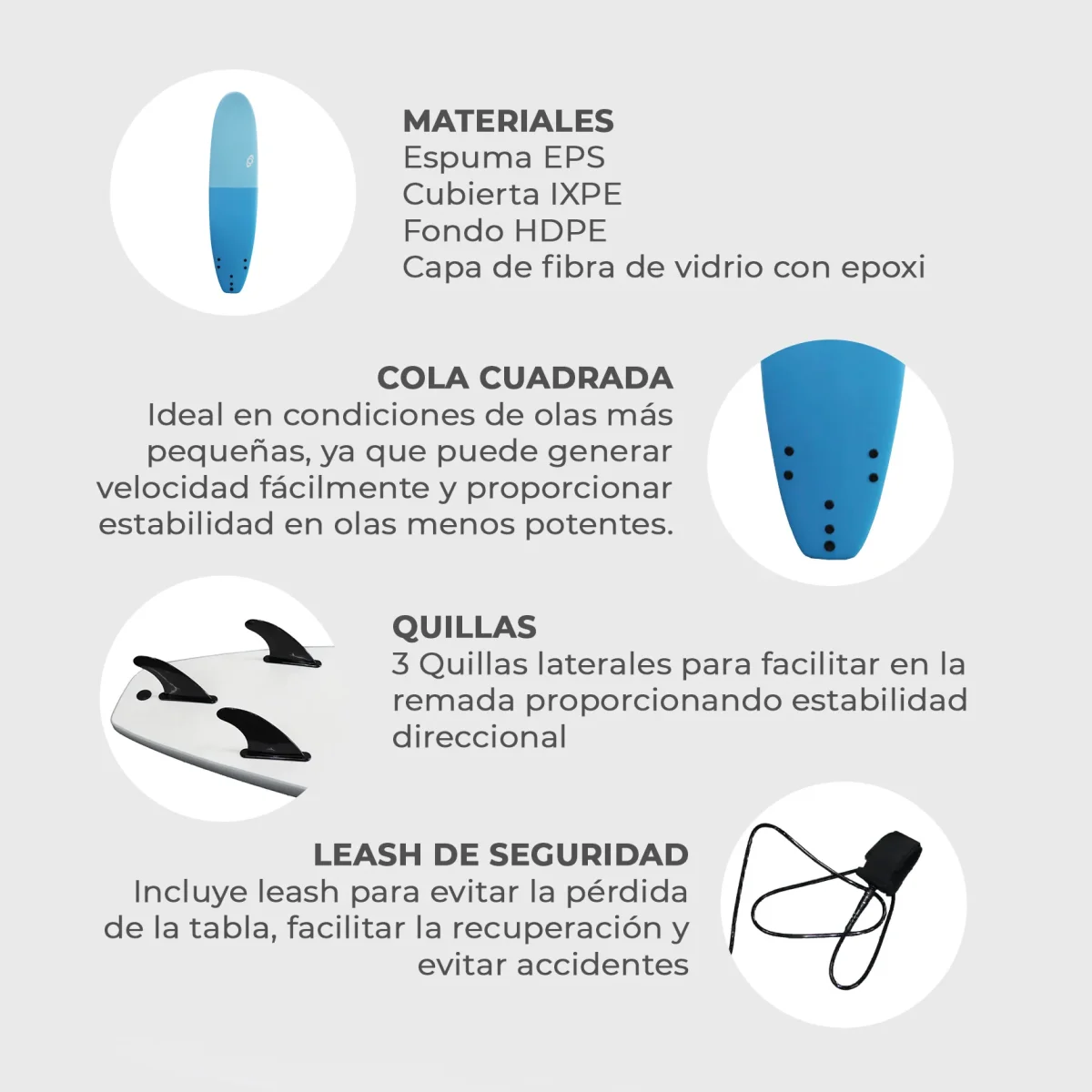 El Softboard de 8 Pies by Kano está diseñado para personas que se están iniciando en el deporte o que buscan hacerlo de manera más tranquila. Es una tabla muy dócil que te entrega facilidades a la hora de surfear dada su gran estabilidad.