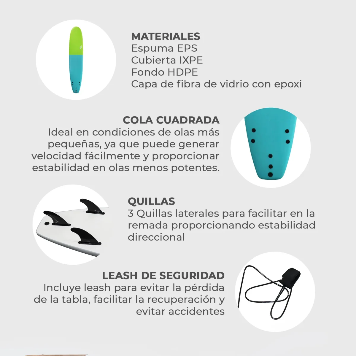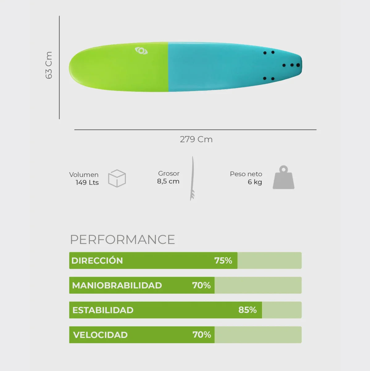 El Softboard de 9 pies by Kano está diseñado para personas que se están iniciando en el deporte o que buscan hacerlo de manera más tranquila. Es una tabla muy dócil que te entrega facilidades a la hora de surfear dada su gran estabilidad.
