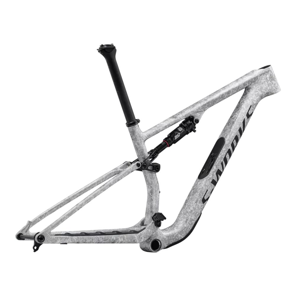Con la Epic 8, no añadimos ni un solo gramo extra para lograr una capacidad increíble en el cuadro. Todos los modelos ahora incluyen SWAT 4.0 para llevar lo esencial del sendero, y un tope de dirección integrado para evitar la clásica marca en el tubo superior cuando te caes y giran los manillares. De hecho, el nuevo cuadro S-Works Epic 8 ha perdido 76 gramos, a pesar de todas estas nuevas incorporaciones.